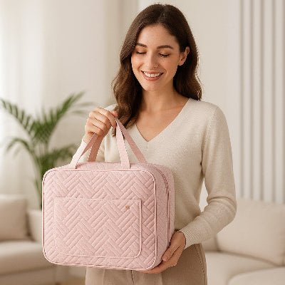 Pour celles qui privilégient l'élégance, la trousse de toilette femme Maya™ offre un style raffiné avec sa texture douce et ses détails sophistiqués. Parfaite pour le quotidien, elle trouvera facilement sa place dans votre salle de bain ou votre sac à main.