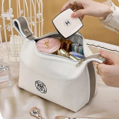 Notre grande trousse CarryAll™ est idéale pour celles qui ne veulent pas faire de compromis sur leurs produits de beauté, même en déplacement. Sa capacité généreuse et ses nombreux rangements vous permettent d'emporter tout ce dont vous avez besoin.